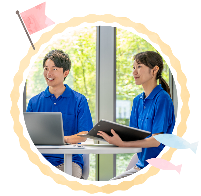 スタッフの多くが女性で、明るく穏やかな雰囲気の職場です。子育て中の方も多く、急な休みにも理解があるなど、家庭と両立しながら働ける環境が整っています。困ったことがあれば、すぐに相談できる安心のチーム体制です。
