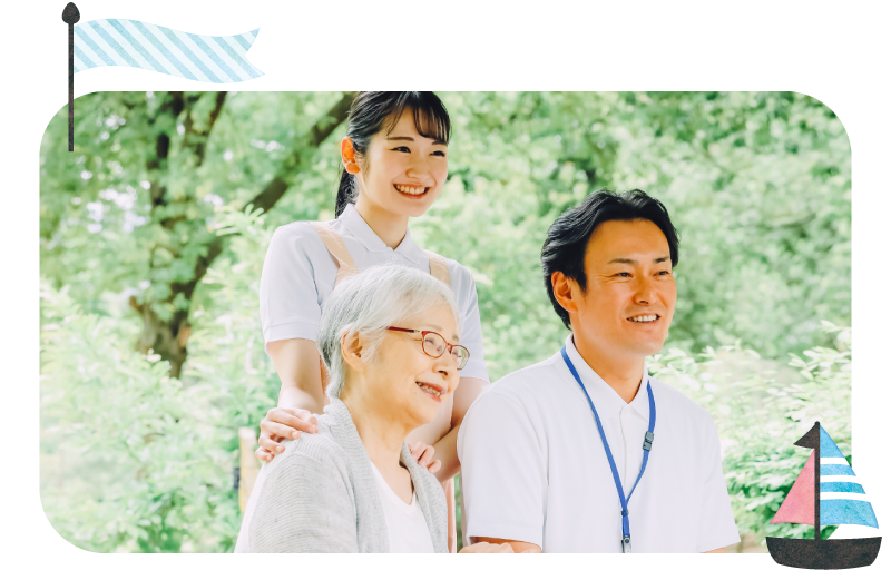 ご入居者様との日々のコミュニケーションを重視し、想いに寄り添ったケアをご提供!日中はデイサービスをご利用いただきながら、ご入居者様とスタッフが大家族のように暮らしています。介護度の高い方も望む暮らしが叶うようお手伝いいたします。